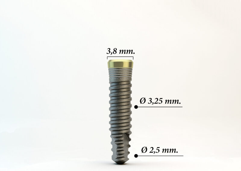 Este modelo es ideal para zonas de atrofia ósea moderada y para restauraciones en pacientes que requieren implantes de diámetro reducido sin comprometer la estabilidad ni la funcionalidad a largo plazo.
