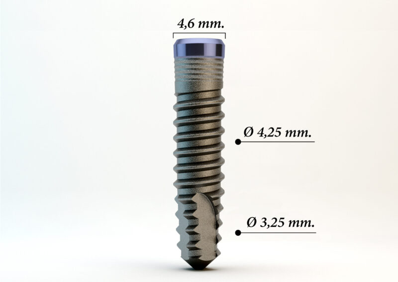 Este modelo es ideal para zonas de atrofia ósea moderada y para restauraciones en pacientes que requieren implantes de diámetro reducido sin comprometer la estabilidad ni la funcionalidad a largo plazo.
